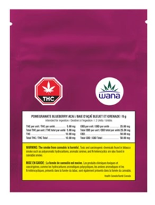 Wana Pomegranate Blueberry Acai 5:1 Gummies combine hints of acidity and a juicy fruit blend. Created with vegan and gluten-free ingredients, each gummy is infused with 25mg of CBD and 5mg of THC terpene-enhanced distillate to create a 5:1 CBD/THC ratio.